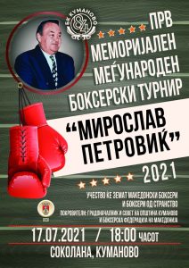 Меѓународен меморијален боксерски турнир „Mирослав Петровиќ“ ќе се одржи во Куманово на 17-ти јули на терените на Спортскиот комплекс „Соколана“. Настанот е во организација на Боксерски клуб Куманово 84, Општинскиот сојуз на спортови Куманово и Фондацијата за култура и спорт при Општина Куманово. Доколку се влошат временските услови, турнирот ќе се одржи во новата спортска сала на техничкото училиште.