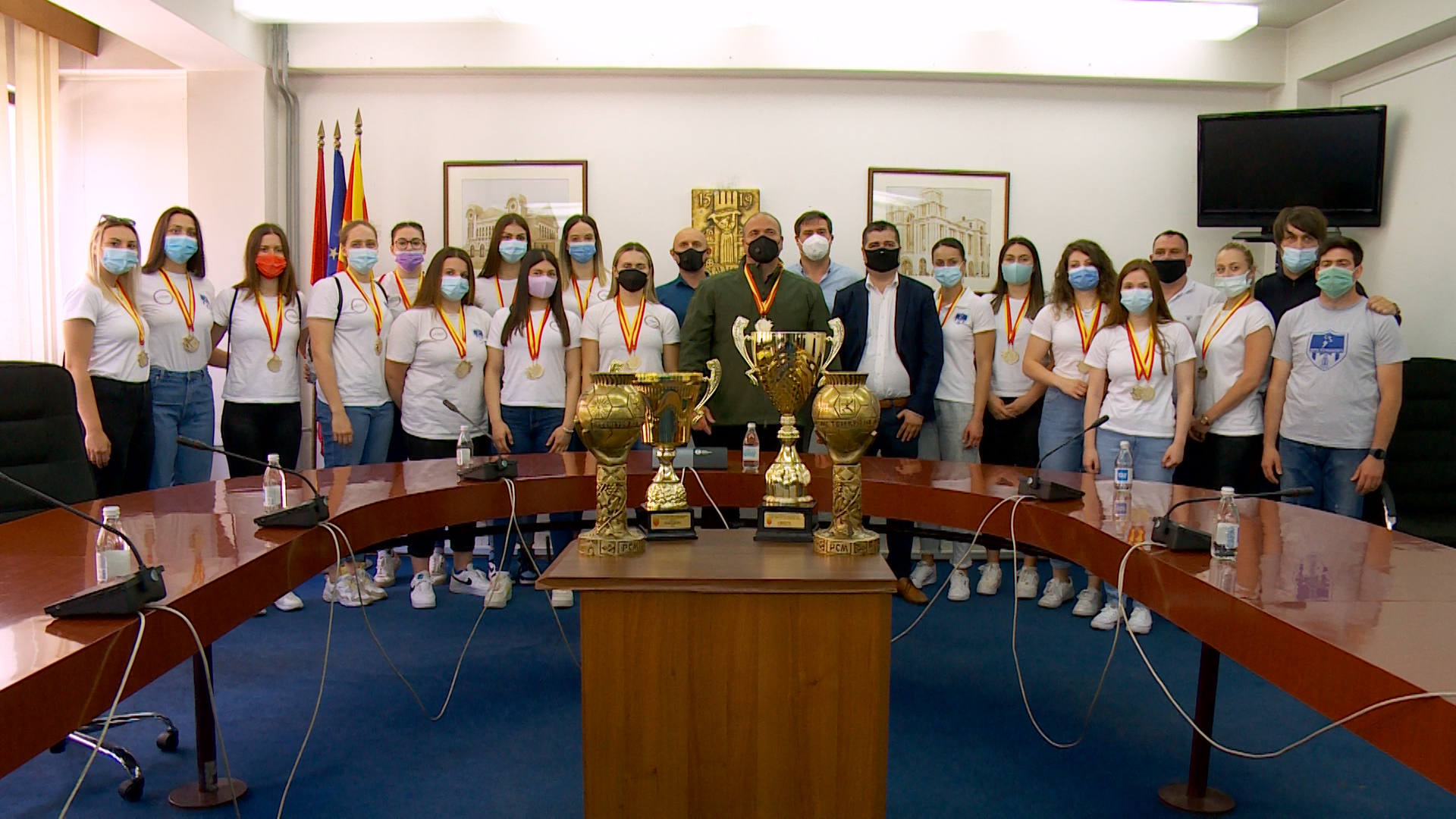 (ВИДЕО) Ракометарките го прославија успехот со градоначалникот