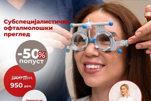 Систина Офталмологија Куманово – педесет проценти попуст на прегледот кај спец.д-р Маја Иванова Цеков