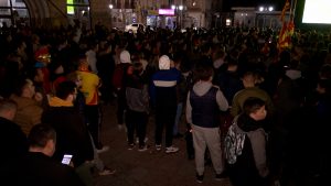 За репрезентацијата се навиваше и од плоштадот во Куманово. Општина Куманово организираше видео бим за заедничко гледање на натпреварот. Кумановци со знамиња и дресови ги бодреа црвено-жолитите.