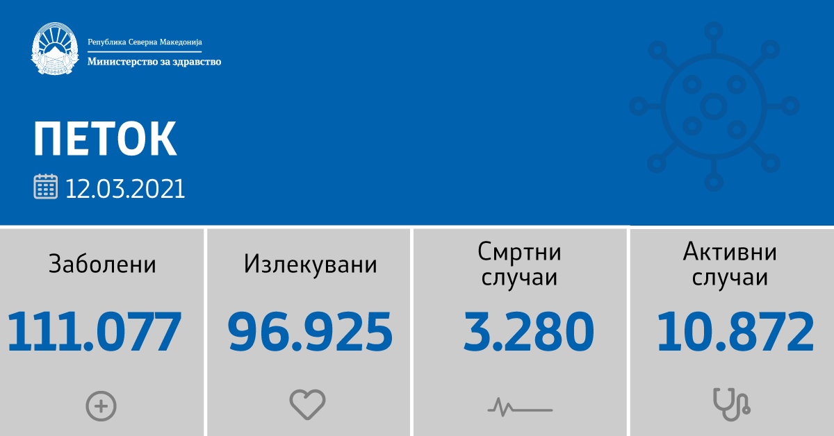 Read moreВо последните 24 часа се направени 3.654 тестирања, а регистрирани се 868 нови случаи на ковид-19 во: Скопје – 424,