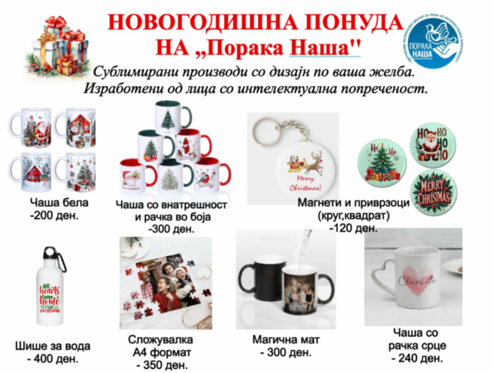 Центарот за рехабилитација и реинтеграција ,,Порака Наша” Куманово ја претстави новогодишната понуда во рамките на која лицата со интелектуална попреченост
